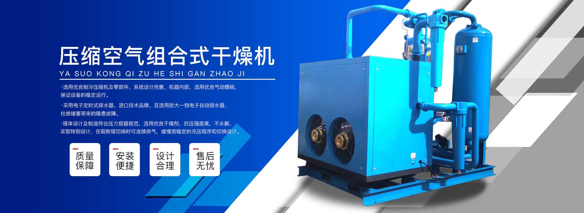 本公司系中國科學(xué)院、重鋼院、機(jī)電技術(shù)設(shè)計(jì)院、氣動(dòng)技術(shù)研究所等相關(guān)專家合作的具有雄厚技術(shù)力量的高科技實(shí)體,是一個(gè)專業(yè)從事各種氣體干燥凈化及分離純化設(shè)備研究開發(fā)及推廣應(yīng)用的高科技公司。公司積多年對(duì)壓縮空氣凈化設(shè)備的生產(chǎn)技術(shù)和銷售經(jīng)驗(yàn),并在消化吸收國外先進(jìn)技術(shù)的基礎(chǔ)上,結(jié)合國內(nèi)實(shí)際工況特點(diǎn),研制出適合國內(nèi)外廣大用戶的“滬盛”牌HSD系列壓縮空氣冷凍式干燥機(jī)、吸附式干燥機(jī)、后部冷卻器、預(yù)冷機(jī)組、工業(yè)用冷水機(jī)組和HF系列壓縮空氣高效精密過濾器(國產(chǎn)濾殼,美國漢克森HANKISON濾芯)等13大系列計(jì)300多種規(guī)格產(chǎn)品。并且新研發(fā)出燥式干器, 廣泛應(yīng)用于電力、冶金、電子、機(jī)械、石油、化工、汽車制造、紡織、化纖、輕工、造紙、橡膠、儀表、食品、空氣、卷煙、生物、醫(yī)藥、日化等行業(yè),在國內(nèi)同行業(yè)中一直處于領(lǐng)先地位。